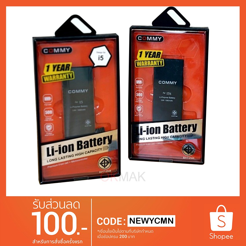 ท่านสามารถสั่งซื้อ Commy แบตเตอรี่ไอโฟน iPhone 4s, 5/5s, 6/6s, 6+/6s+, 7/7+ ของแท้ % รับประกัน 1 ปี ราคาถูกและพิเศษ ซึ่งสามารถสั่งซื้อได้ตลอด 24 ชั่วโมง 7 วัน ไม่มีวันหยุด พร้อมพบกับข้อเสนอสุดพิเศษได้ตลอดเวลา แต่อาจจะมีเวลาที่จำกัดสำหรับช่วงโปรโมชั่น ก่อนที่ท่านจะซื้อ Commy แบตเตอรี่ไอโฟน iPhone 4s, 5/5s, 6/6s, 6+/6s+, 7/7+ ของแท้ % รับประกัน 1 ปีอย่าลืมเช็ค ราคา สถานะ และระยะเวลาในการส่งของ ของสินค้าก่อนตัดสินใจ และรีบรับข้อเสนอพิเศษๆ จากทางเราก่อนที่สินค้าจะหมดสต๊อค